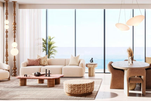 Designed to reflect the beauty of its natural surroundings, the project features four architecturally striking towers inspired by the movement of ocean waves and the calm tones of the coastline. Every residence is thoughtfully planned to maximize natural light, open layouts, and seamless indoor-outdoor living through spacious balconies overlooking the sea and island skyline.