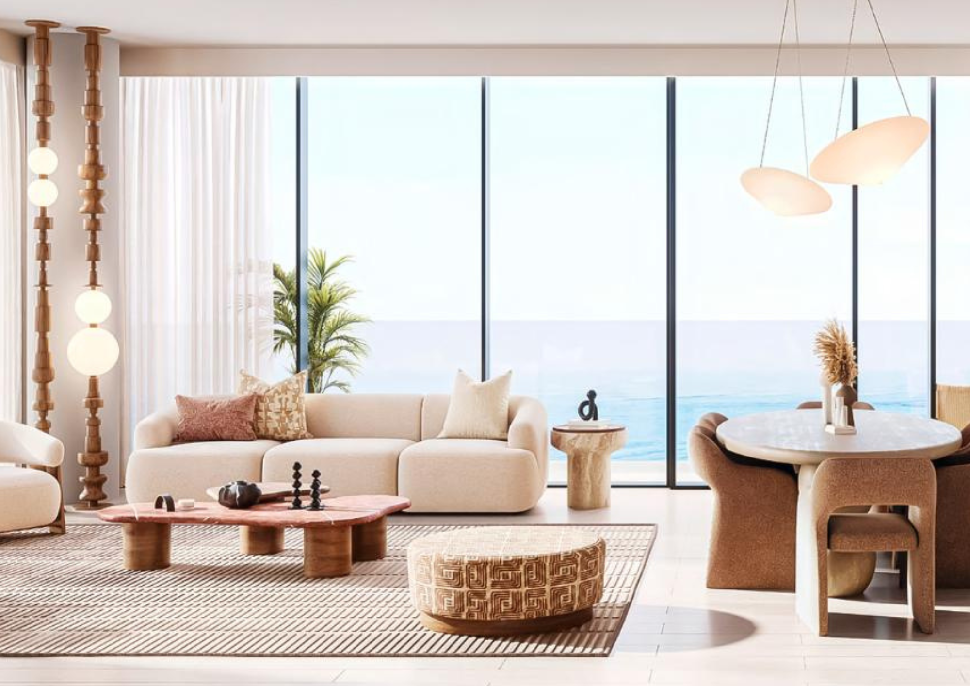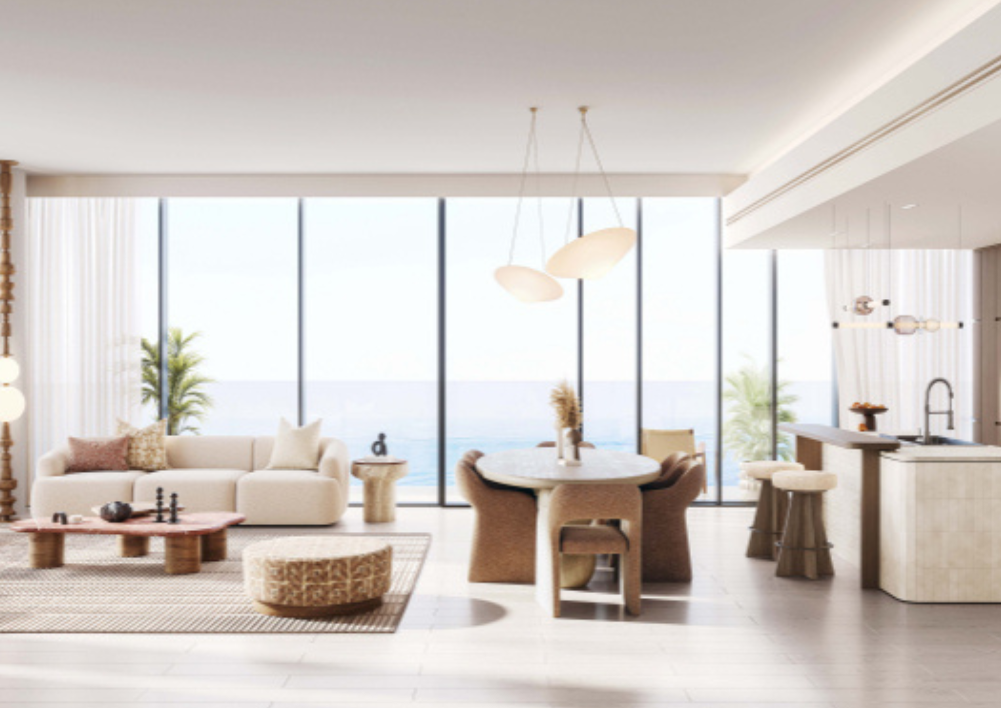 Designed to reflect the beauty of its natural surroundings, the project features four architecturally striking towers inspired by the movement of ocean waves and the calm tones of the coastline. Every residence is thoughtfully planned to maximize natural light, open layouts, and seamless indoor-outdoor living through spacious balconies overlooking the sea and island skyline.