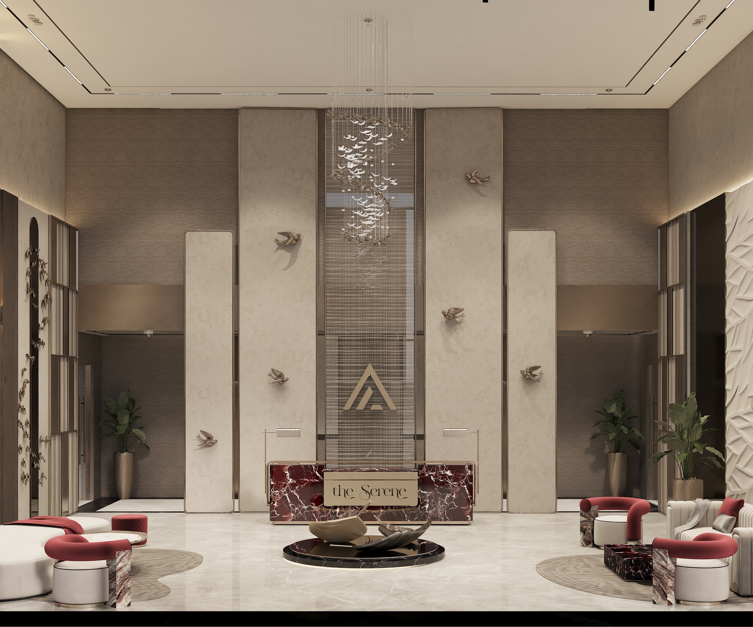 ✅ Grand luxury lobby with high ceilings providing a striking first impression.