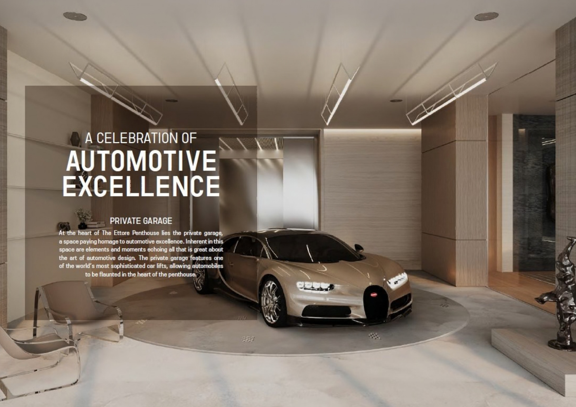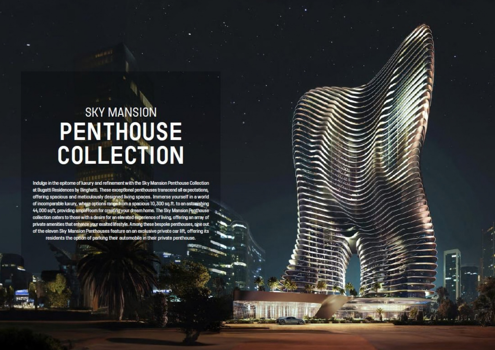 | Premium Features | Private garages and dedicated parking; Automated car lifts allowing vehicles to be transported directly to select residences; Smart home technology; High-end security systems and controlled access; Housekeeping services |