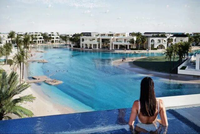 Crystal lagoon with waterfront views; Artificial beach areas; Swimming pools; Kids’ swimming pool; Walking promenades along the waterfront