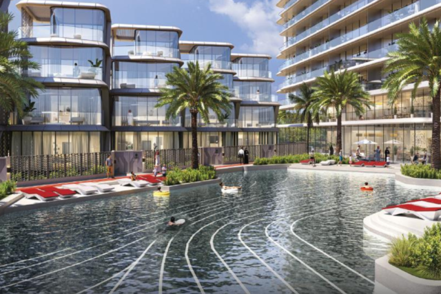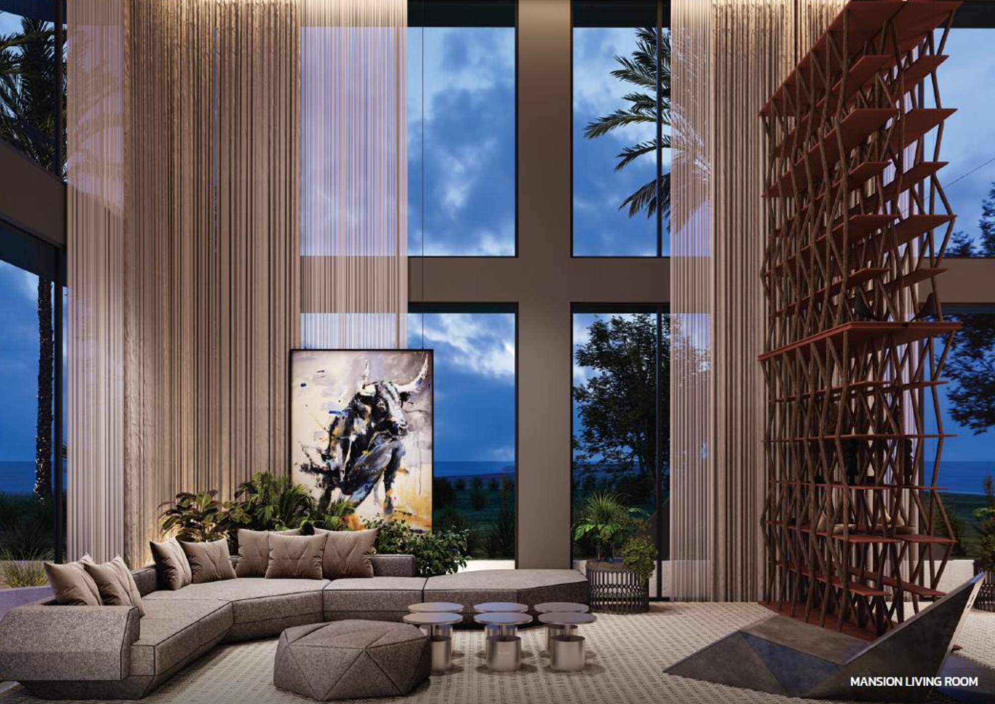 The approach is framed by ample landscaped areas, introducing texture, shade, and a measured pace before the building edge. Set close to the beach, arrival immediately registers the coastal context, the light off the water, the breeze, and an open horizon. Sightlines are managed to preserve discretion, while vistas open toward internal landscape, pool courts, and sea aspects as you progress. Surrounding uses, residential, hospitality, villas and townhouse communities, reinforce a quietly vibrant setting that feels established yet serene. Altogether, the entrance reads as a calm threshold between island life and private home, with clarity, comfort, and composure.