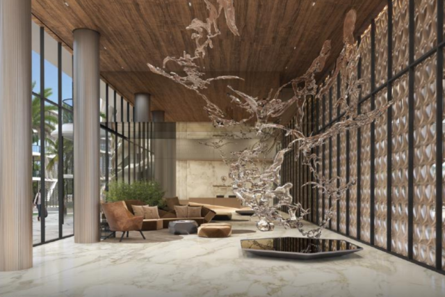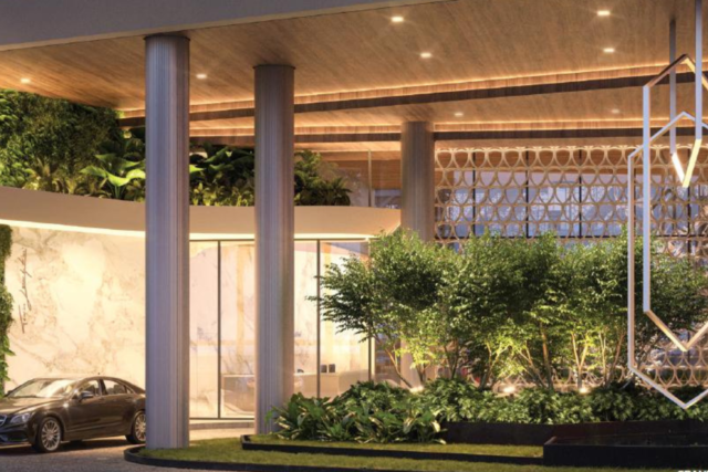 The entrance is intentionally refined and modern, aligning with the development’s residential character. A clear approach leads to an access-controlled threshold that prioritises resident privacy, establishing a calm sense of security from the first step to the lobby. Landscaped realms soften edges and guide movement, creating a discreet transition from public space to private domain. The space is clear and unique, with routes that feel intuitive, efficient, and unhurried. Material expression remains quiet and refined, letting the island context take precedence while signalling a composed, confident arrival, from the street to sheltered threshold, gracefully with a play of lighting.