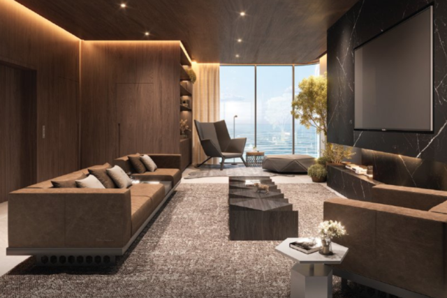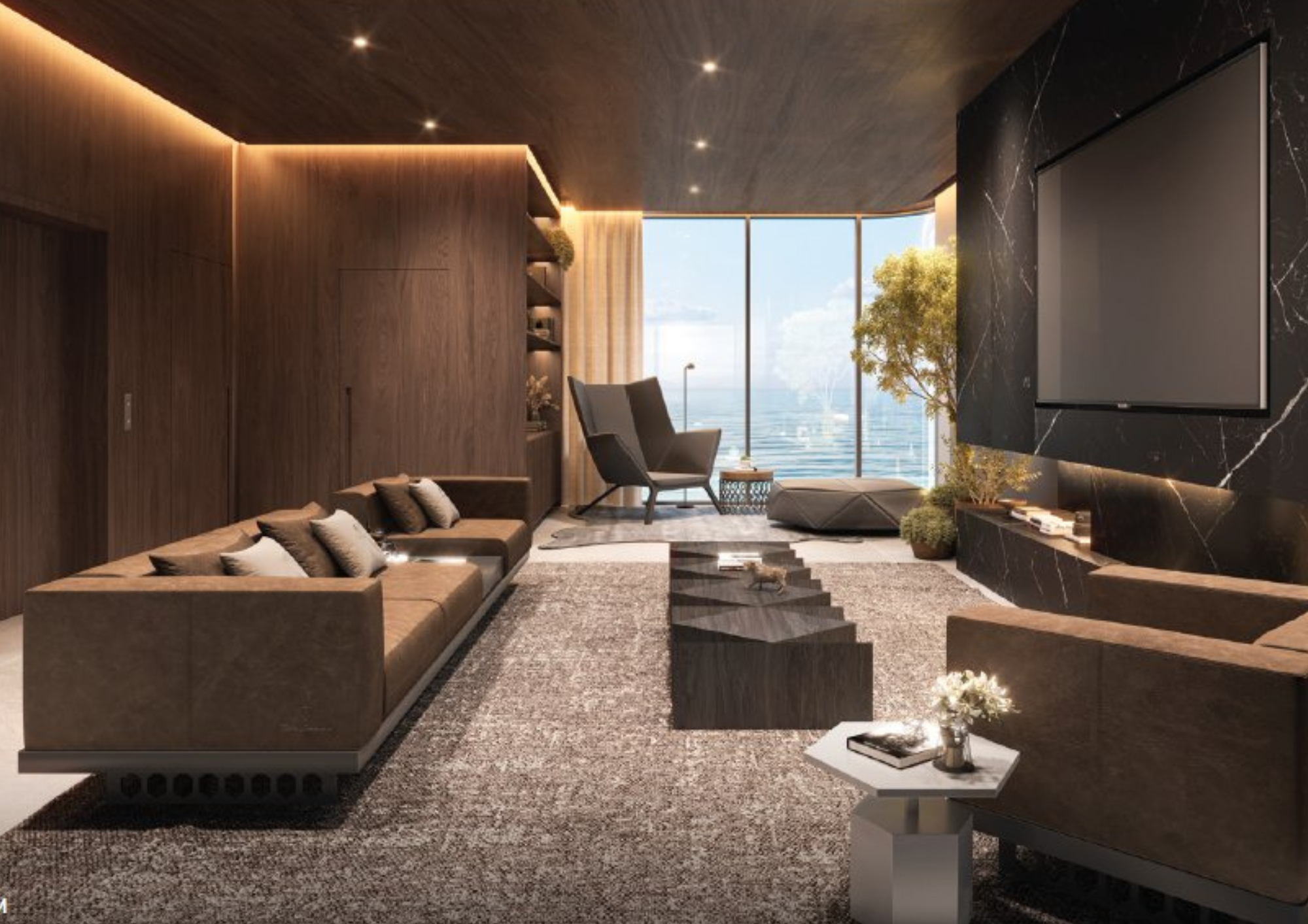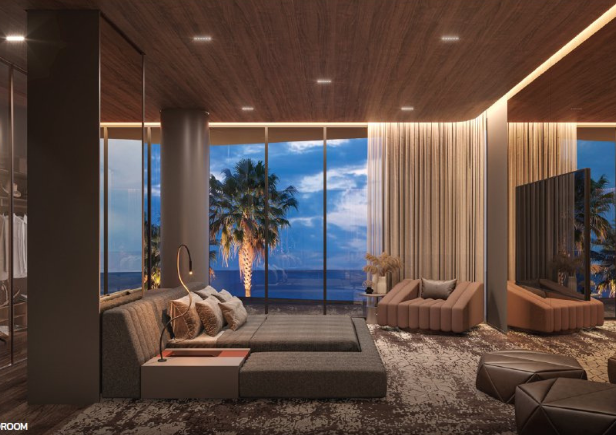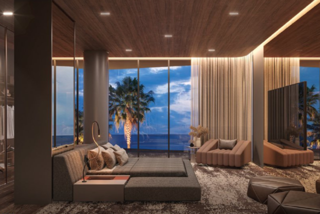 Interiors are conceived as an extension of Tonino Lamborghini’s design language – bold, refined, and quietly elegant. Clean architectural lines frame generous volumes, allowing light to move freely across textured surfaces and tailored finishes. A restrained palette of warm neutrals, and subtle metallic accents establishes continuity with the coastal setting while maintaining an unmistakably style. Every element is deliberate: from calibrated proportions to tactile details that invite touch. The result is a living environment that feels composed yet expressive, where craftsmanship, comfort, and clarity coexist effortlessly.